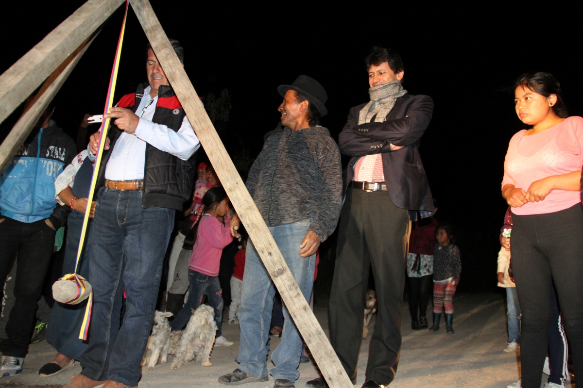 IBARRA.- Decenas de moradores de la parroquia El Sagrario, cantón Cotacachi, entusiasmados, esperaron el arribo del prefecto de Imbabura, Pablo Jurado, quien llegó, la noche del martes, 5 de junio, hasta la comunidad Iltaquí, en esta ocasión no solo a visitarlos sino a firmar el contrato de empedrado de la vía principal hasta la casa comunal. “Este es realmente un sueño cumplido y con mucha alegría entregaremos nuestro apoyo al contratista para que se pueda cumplir con el plazo establecido”, dijo Rafael Tamayo, presidente de la comunidad. El líder de este sector agradeció por la visión de las autoridades de atender un requerimiento urgente en materia vial. Señaló que durante muchos años permanecieron sin ser tomados en cuenta en los planes de desarrollo. Incluso, los proyectos propuestos nunca recibieron una respuesta positiva. Tamayo recalcó que fue la actual administración del organismo provincial, la que por fin dio paso a un requerimiento, con el que esperan mejorar su calidad de vida. El empedrado del camino tiene un costo de 84.649 dólares. Se lo ejecutará en un plazo de tres meses. El objetivo es que esta acción ayude a cambiar la imagen de la comunidad, convirtiéndola en más atractiva, conservando sus características especiales que encierra la ruralidad. El tramo a ser intervenido tiene 100 metros de longitud, 7 metros de ancho. Para que los trabajos arranquen de manera inmediata se entregó el anticipo del 50 por ciento. Esto compromete al contratista establecer un cronograma estricto para el cumplimiento de la tarea. Al oficializar el contrato, el Prefecto de Imbabura, Pablo Jurado Moreno, aseguró que su labor seguirá enfocada a impulsar el mejoramiento de calidad de vida de los habitantes imbabureños. “La vialidad es necesaria para la actividad productiva y es nuestro compromiso intervenir para que sea óptima”. Al acto asistió también el alcalde del cantón Cotacachi, Jomar Cevallos, quien indicó que el esfuerzo coordinado trae como consecuencia resultados positivos. “Nosotros iniciamos una primera fase y ahora será la Prefectura la que de continuidad al mejoramiento del camino. Esperamos seguir de la misma forma, compartiendo esfuerzos, hasta culminar con un proyecto total de empedrado en esta comunidad”.