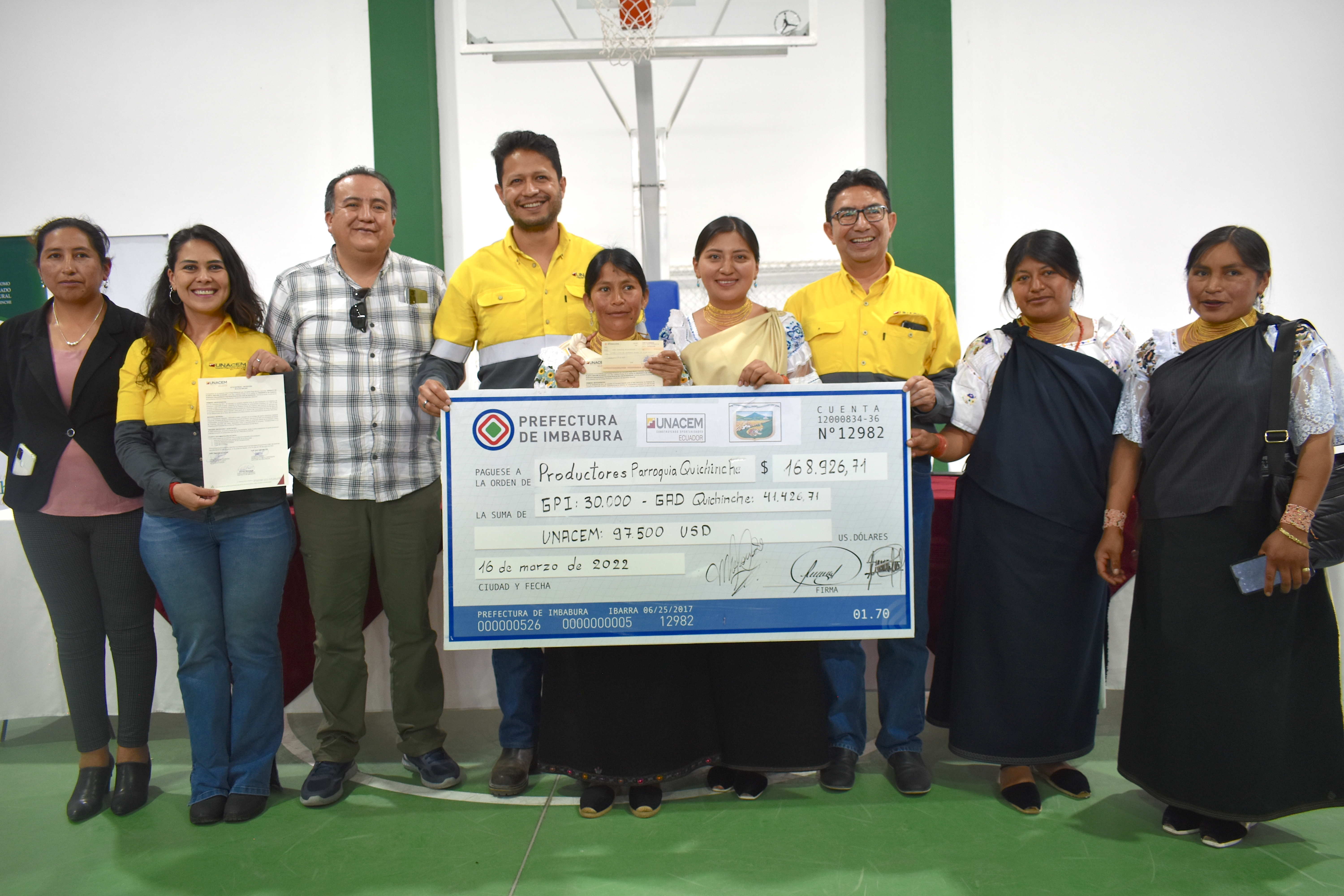 Apuk ukuwan, UNACEM tantariwan, shinallatak Quichinche kitilliwan wankurishpak patsak , suxta chunka , putsak waranka , chusku patsak, ishkay chunka , suxta dólares kullkikunapak Sumak Muyu tantaripi tarpuk mashikunata yanapan , paykuna muru pukuchishkakunata llukchishpak hatuykunata ruray ushachun.