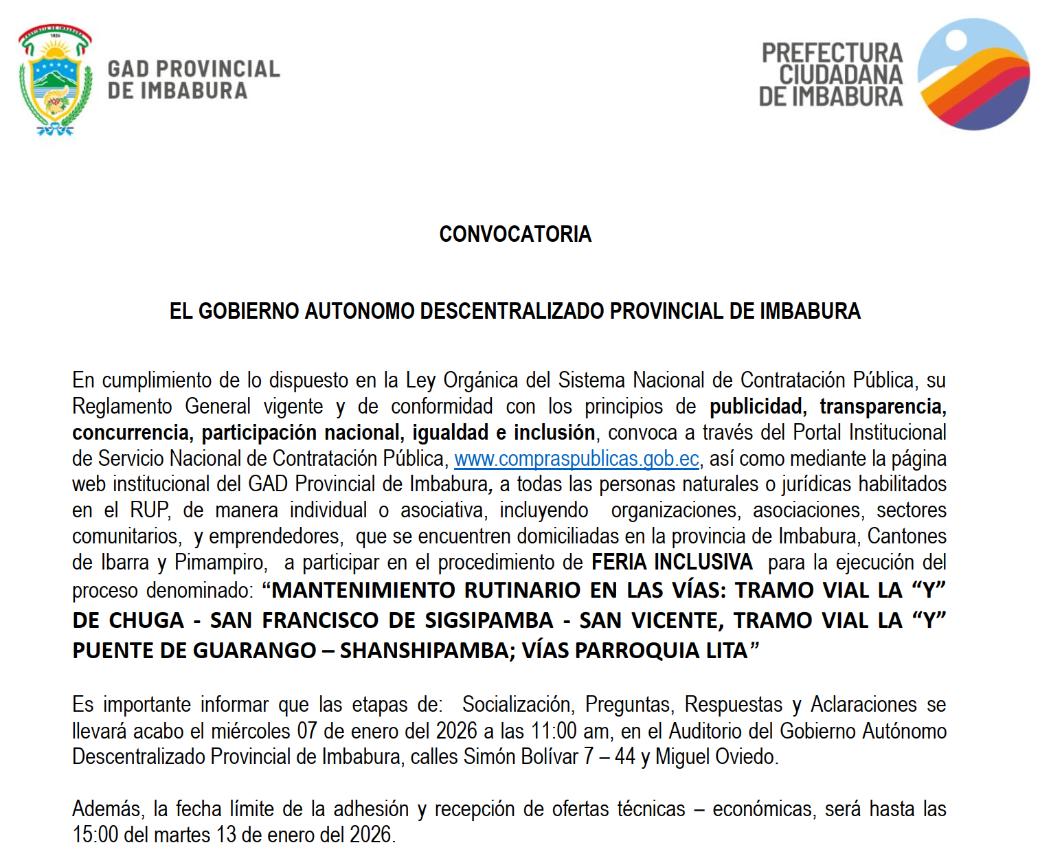 El Gobierno Autónomo Descentralizado Provincial de Imbabura, a través de su programa emblemático...