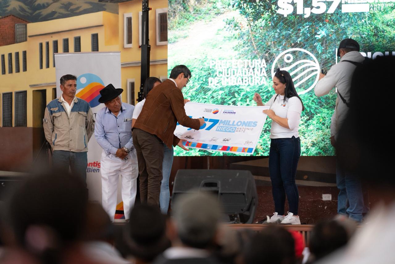 IBARRA.- La historia del desarrollo rural en el cantón Antonio Ante da un giro trascendental. El prefecto de Imbabura, Richard Calderón, lideró este 14 de diciembre de 2025 un acto sin precedentes, al entregar USD 1´570.000 para la ejecución de obras estratégicas de riego, una decisión firme que consolida la inversión pública como motor del desarrollo social y económico. Esta acción fortalece la soberanía alimentaria, mejora la productividad agrícola y dignifica el trabajo de miles de familias dedicadas al cultivo del campo.